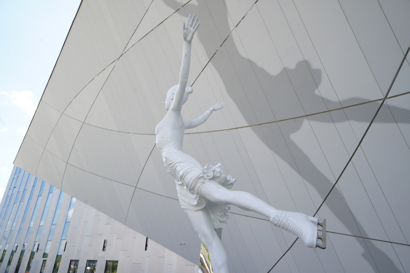 Фасадная система Perfaten АКФ400 с ребрами жесткости, а также с художественной перфорацией, имитирующей «Тень фигуристки»